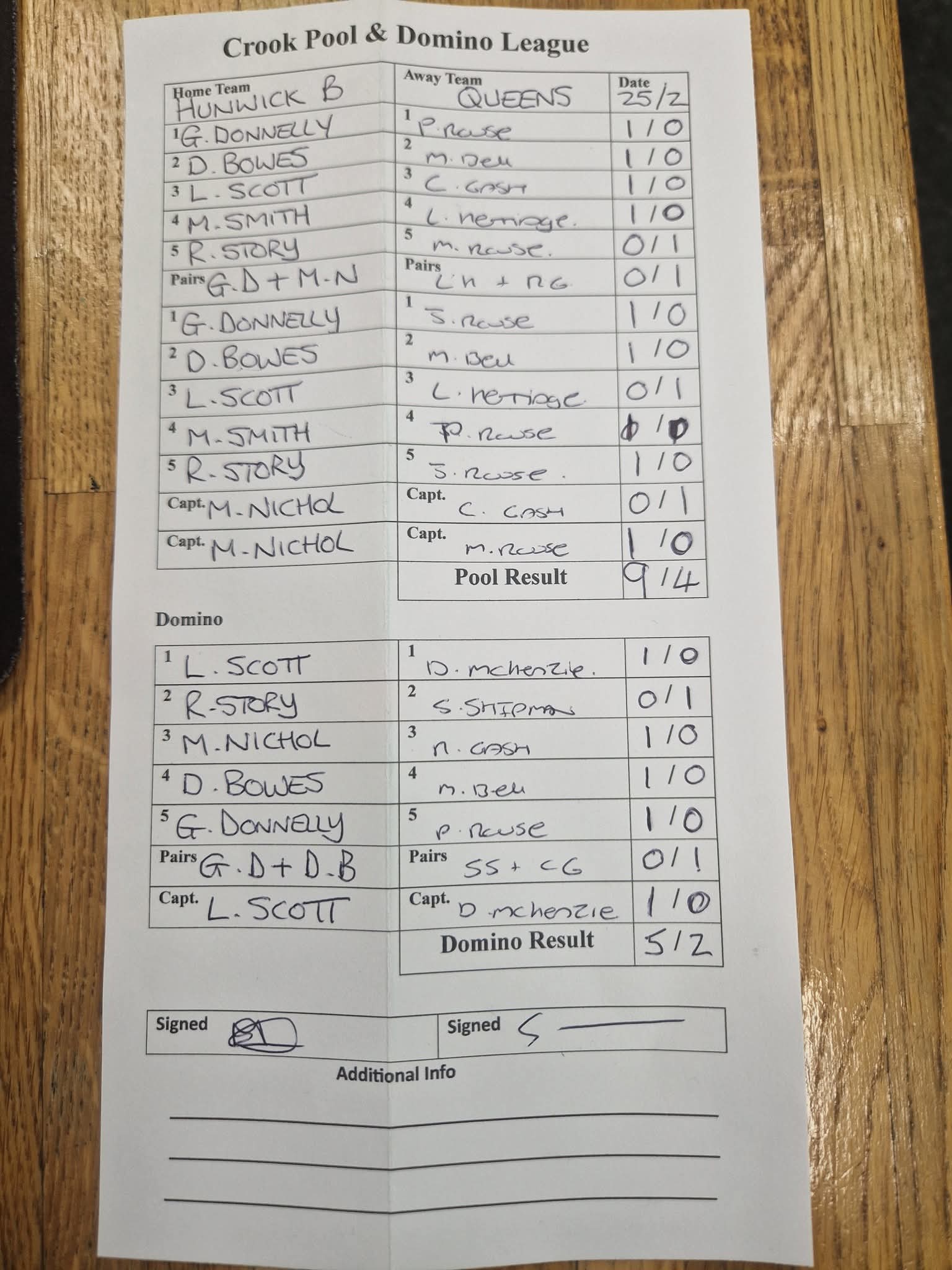 Queens vs Crook Hotel A