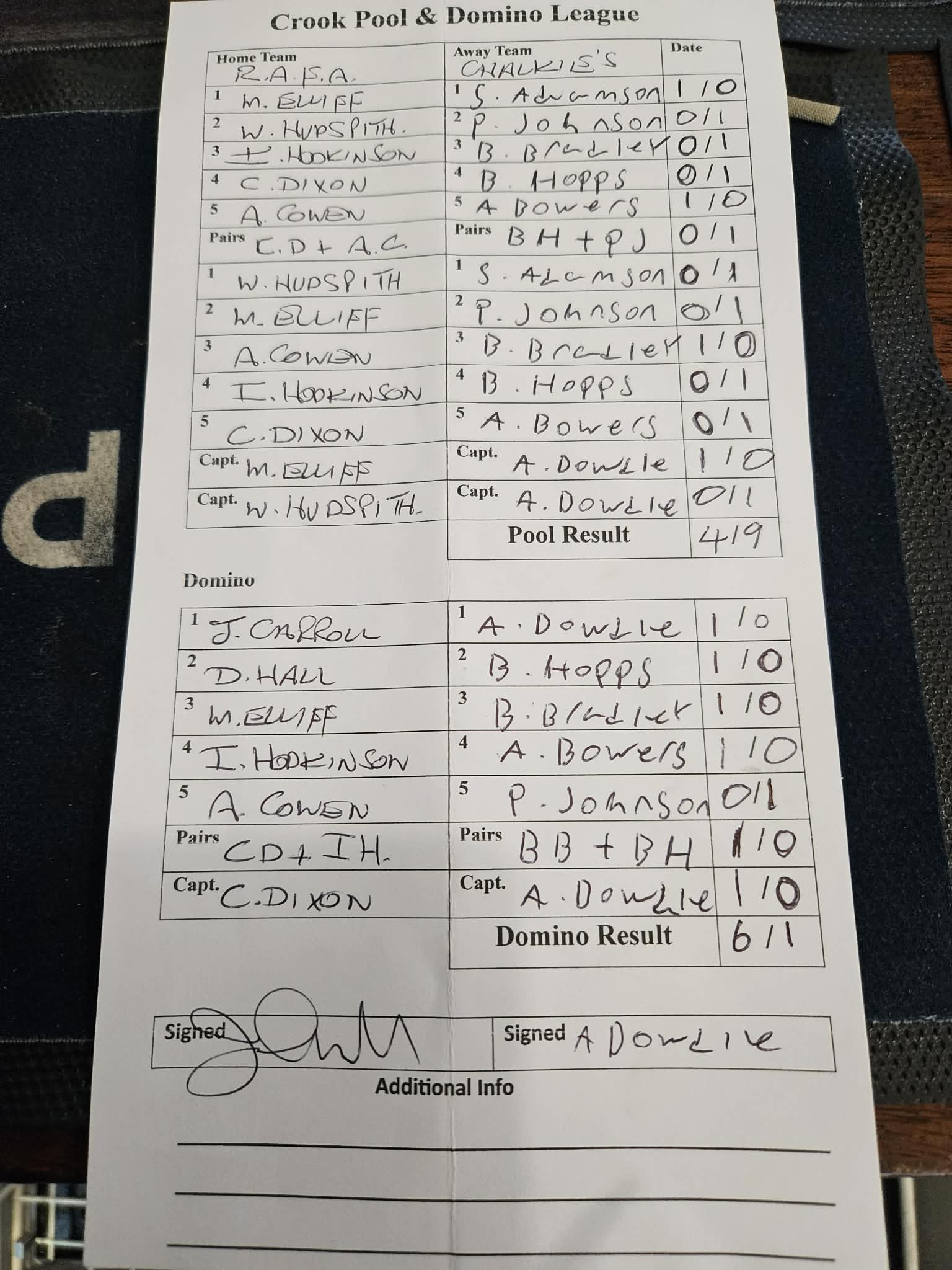 RAFA vs Crook Hotel B