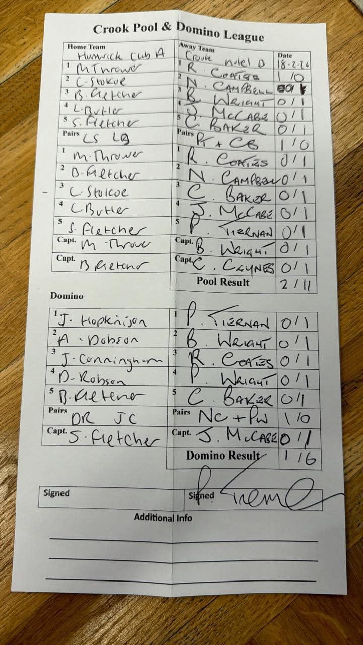 Crook Hotel A vs Hunwick Club B