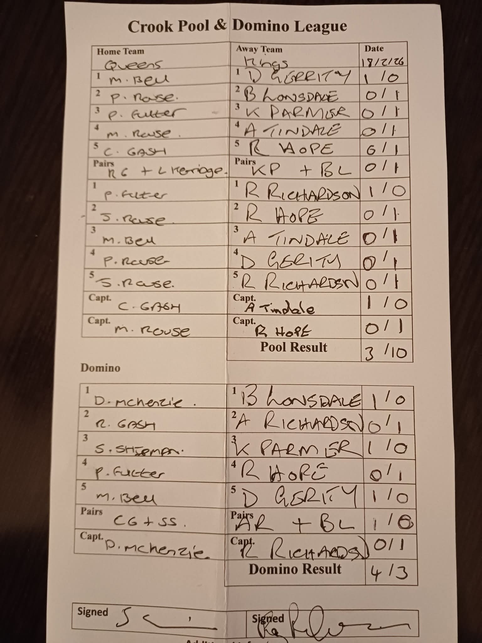 Crook Hotel B vs Kings