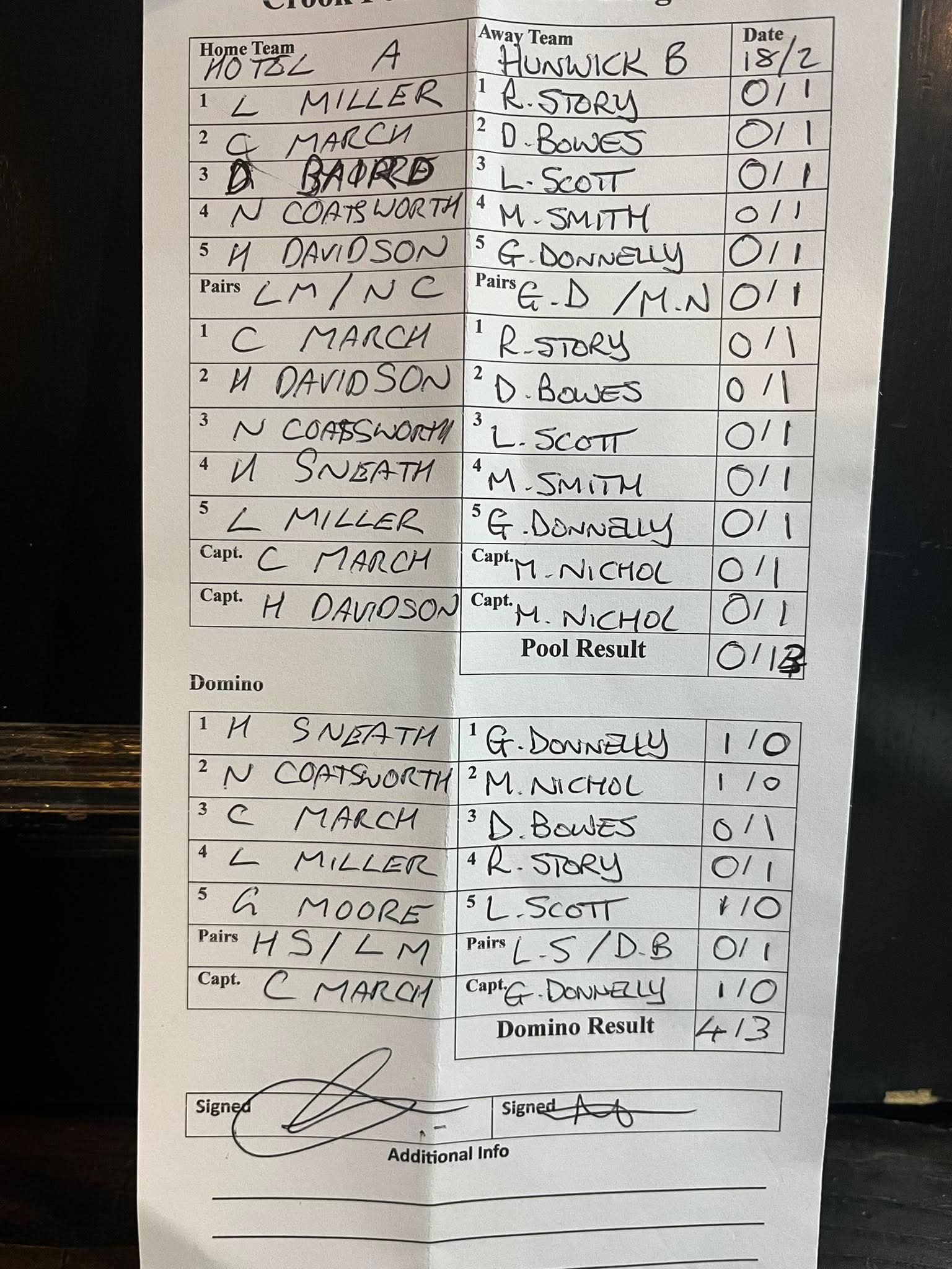 Hunwick Club A vs Crook Hotel B