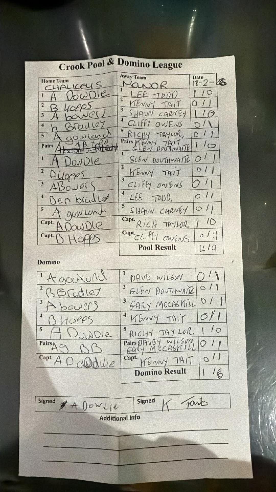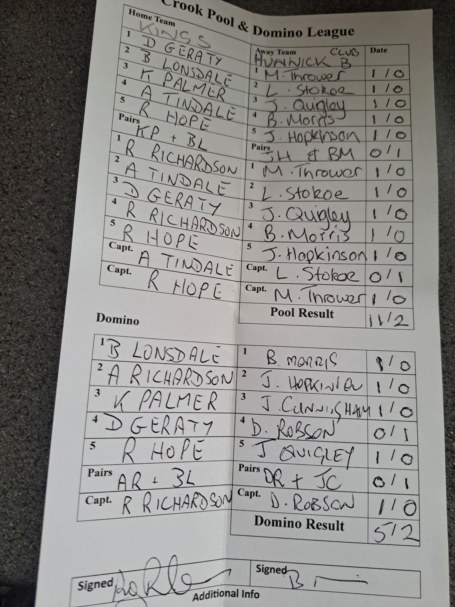 Crook Hotel A vs Kings
