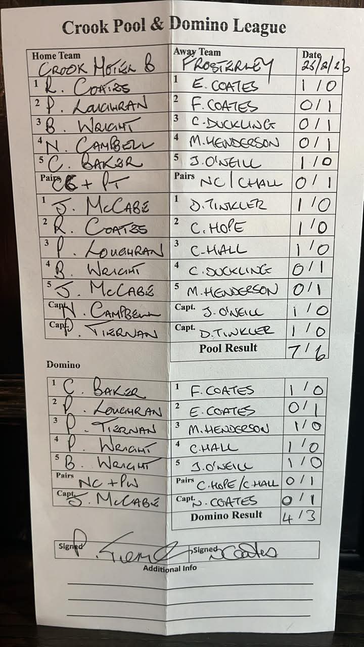 Crook Hotel B vs Bye